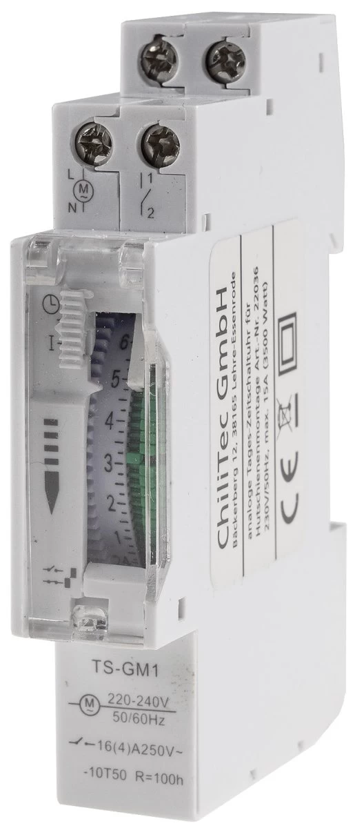 Ausgereifte analoge Tages-Zeitschaltuhr für den Einbau in Schalttafeln.