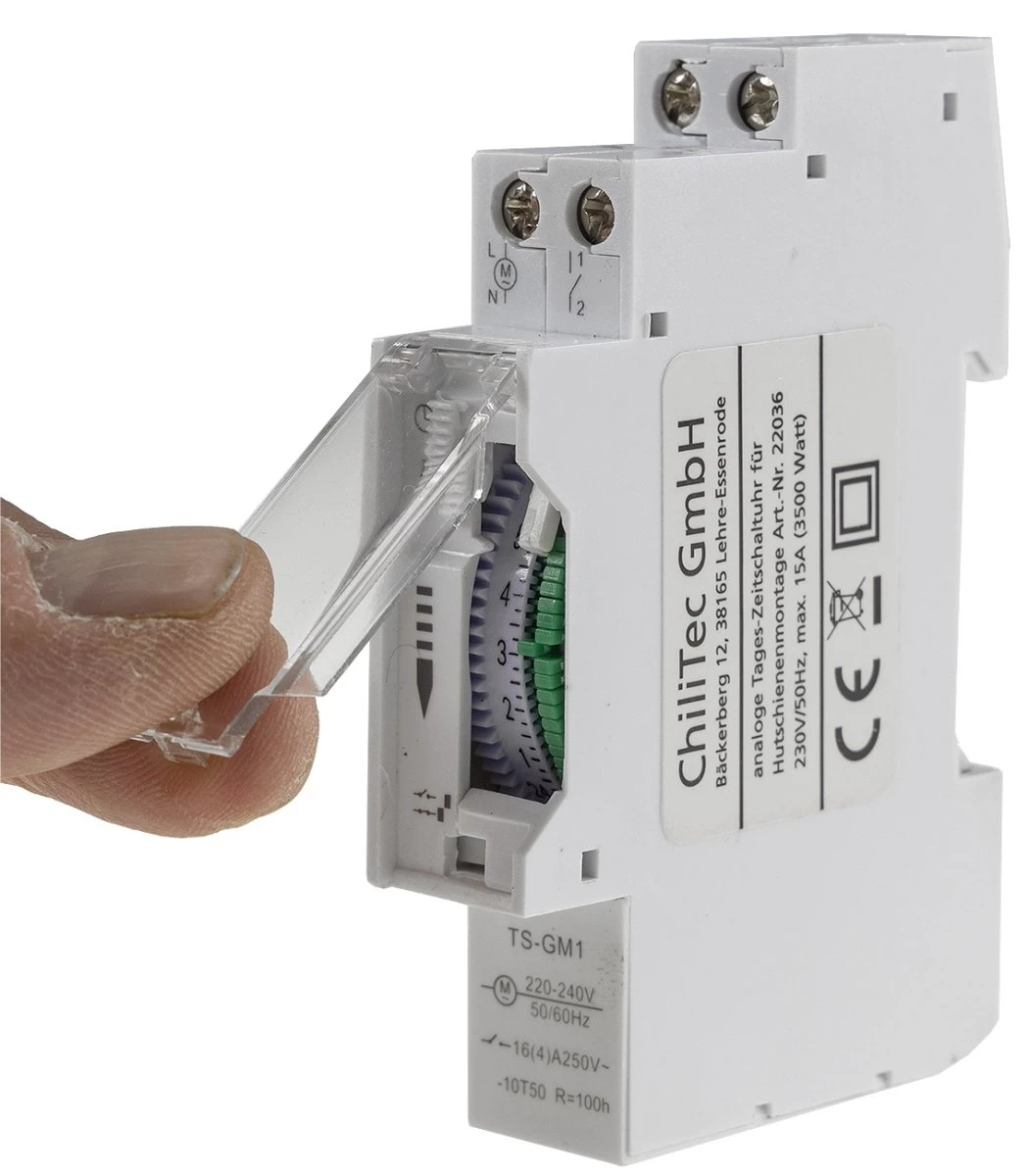 analoge Tages-Zeitschaltuhr für Schalttafel-Einbau, 230V, max. 3500W