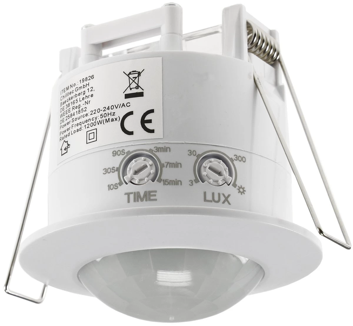 Decken-Einbau-Bewegungsmelder 360° LED geeignet, 6m Detektion, weiß