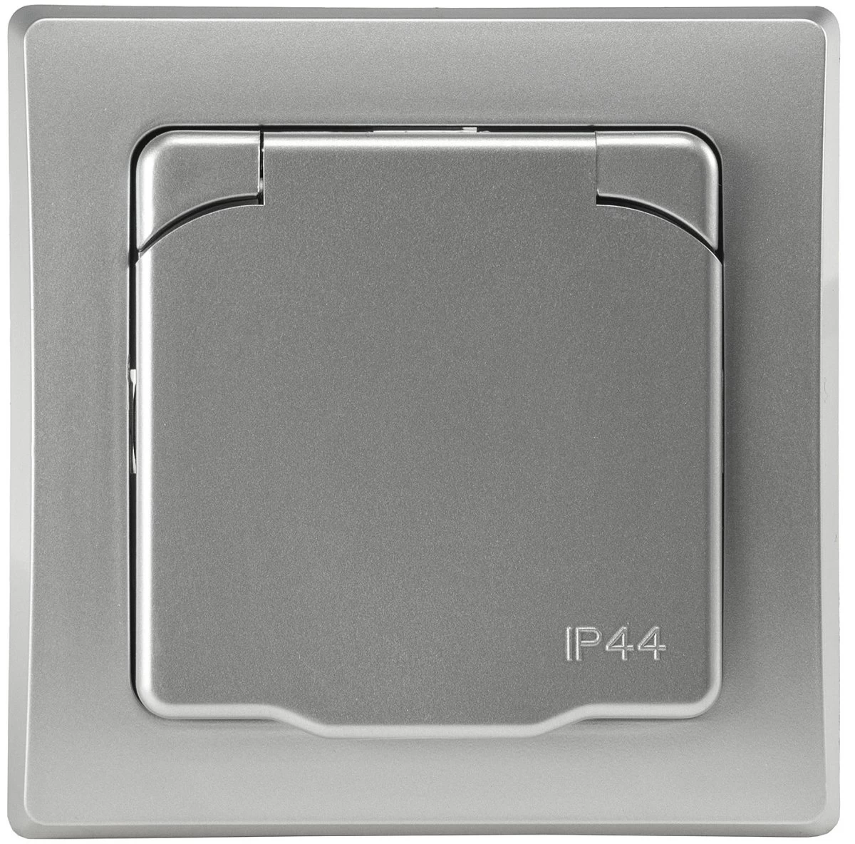 DELPHI Schutzkontakt-Steckdose IP44 250V~/ 16A, inkl. Rahmen, UP, silber