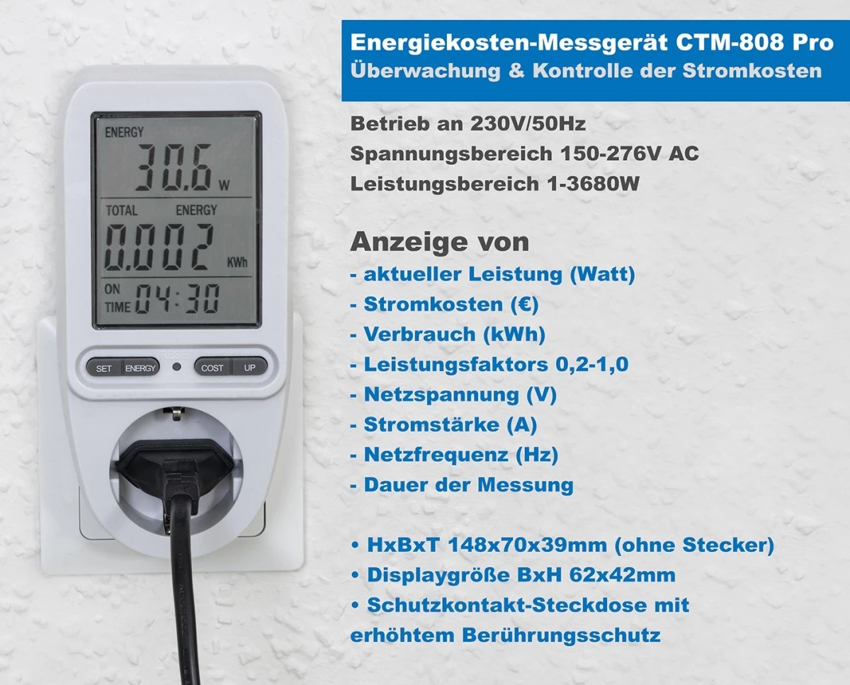 Energiekosten-Messgerät „CTM-808 Pro“ LC-Display, Messung bis zu 3680W