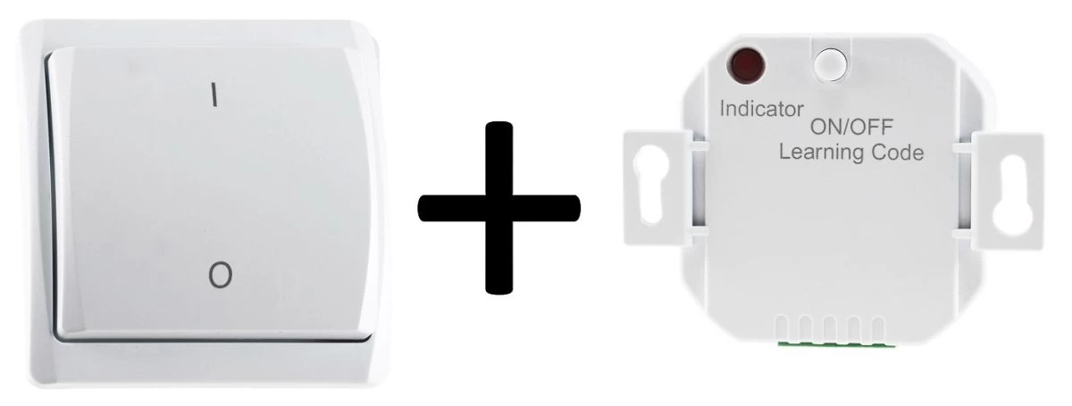 Praktisches Starter Set bestehend aus 1x 1-fach Wandschalter und 1x Funk-Empfänger für Unterputz Montage.