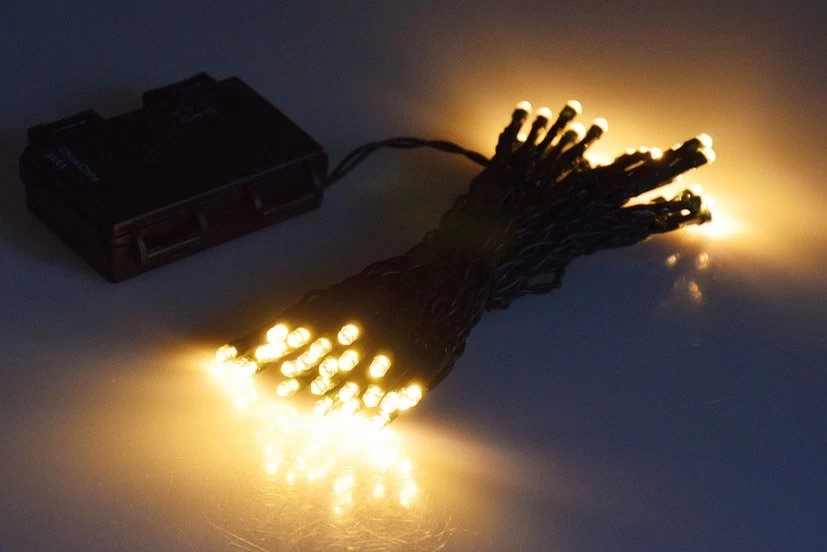 LED Batterie-Lichterkette „CT-TK50“ 5m warmweiß, IP44, 50 LEDs, mit 6 Std.Timer