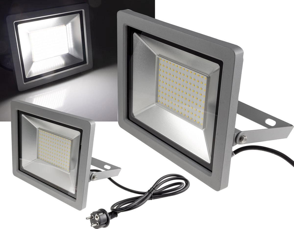 LED-Fluter SlimLine „CTF-SLT 99“ silber 100W, 9230lm, 4000K, neutralweiß, IP44