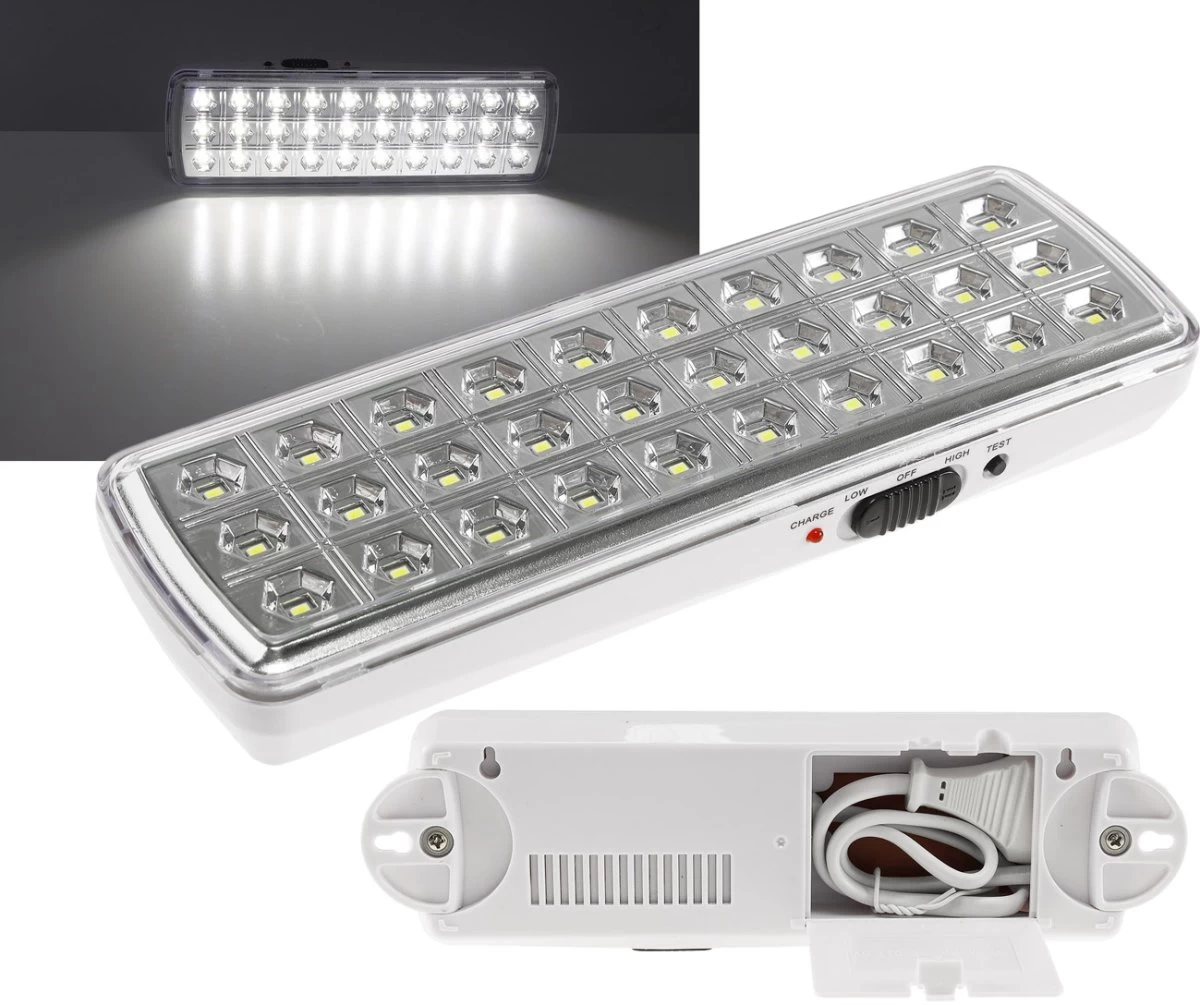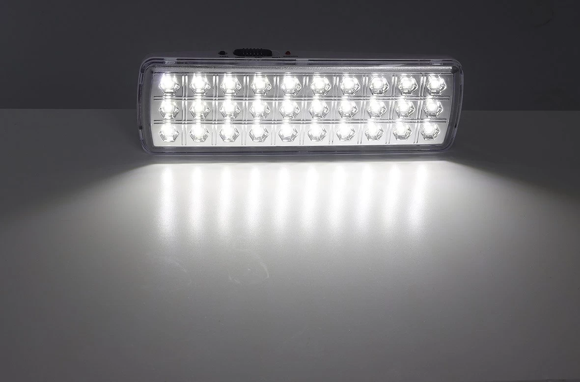 Notleuchte mit 30 Hochleistungs-LEDs und hochwertigen, langlebigem Lithium Akku, universell einsetzbar. Bei Ausfall des Strometzes automatisches Einschalten durch integrierten Akku.
