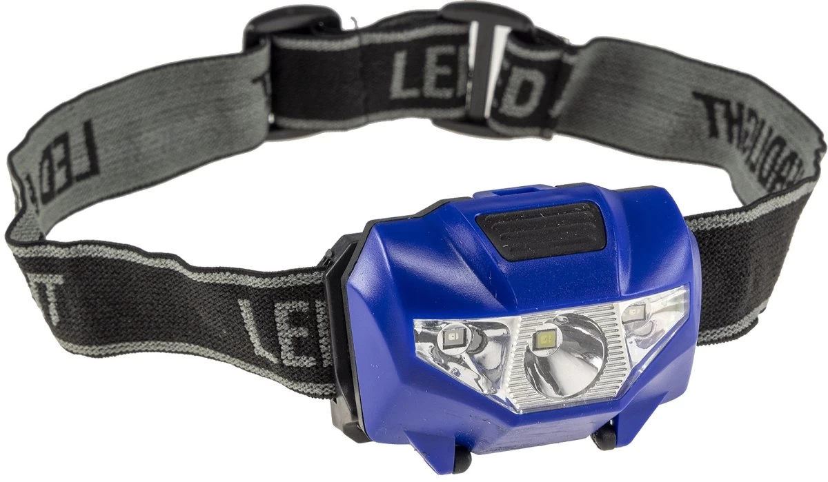 Hochwertige Stirnlampe mit 3W COB Hochleistungs-LED für optimale Ausleuchtung des Nahbereichs. – 3W HighPower LED – ca. 150 Lumen, 6000K – Dauerlicht und Blinkfunktion – Betrieb mit 3x Micro-Batterien AAA – sehr komfortables Gummi-Kopfband
