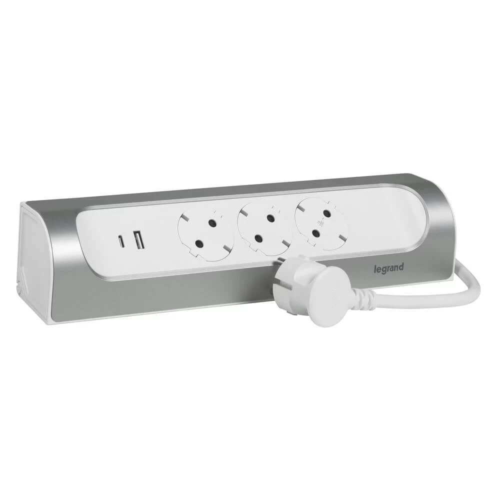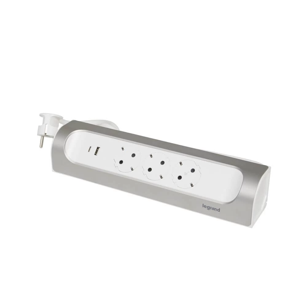 Legrand Ecksteckdosenleiste 3x Steckdose, USB-A, USB-C, 1m Kabel Ultraweiß/Aluminium 694502
