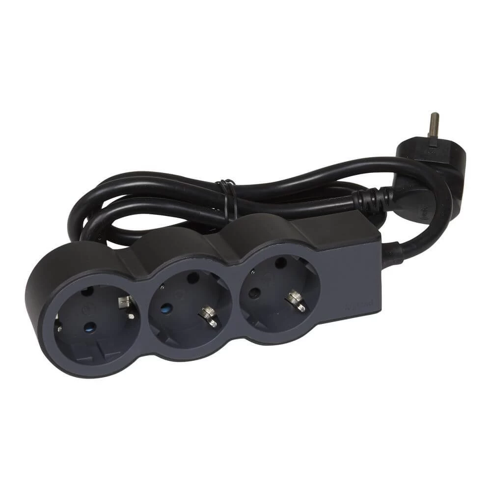 Legrand Flache Steckdosenleiste 3x Steckdose, 5 Meter Kabel Schwarz 694568