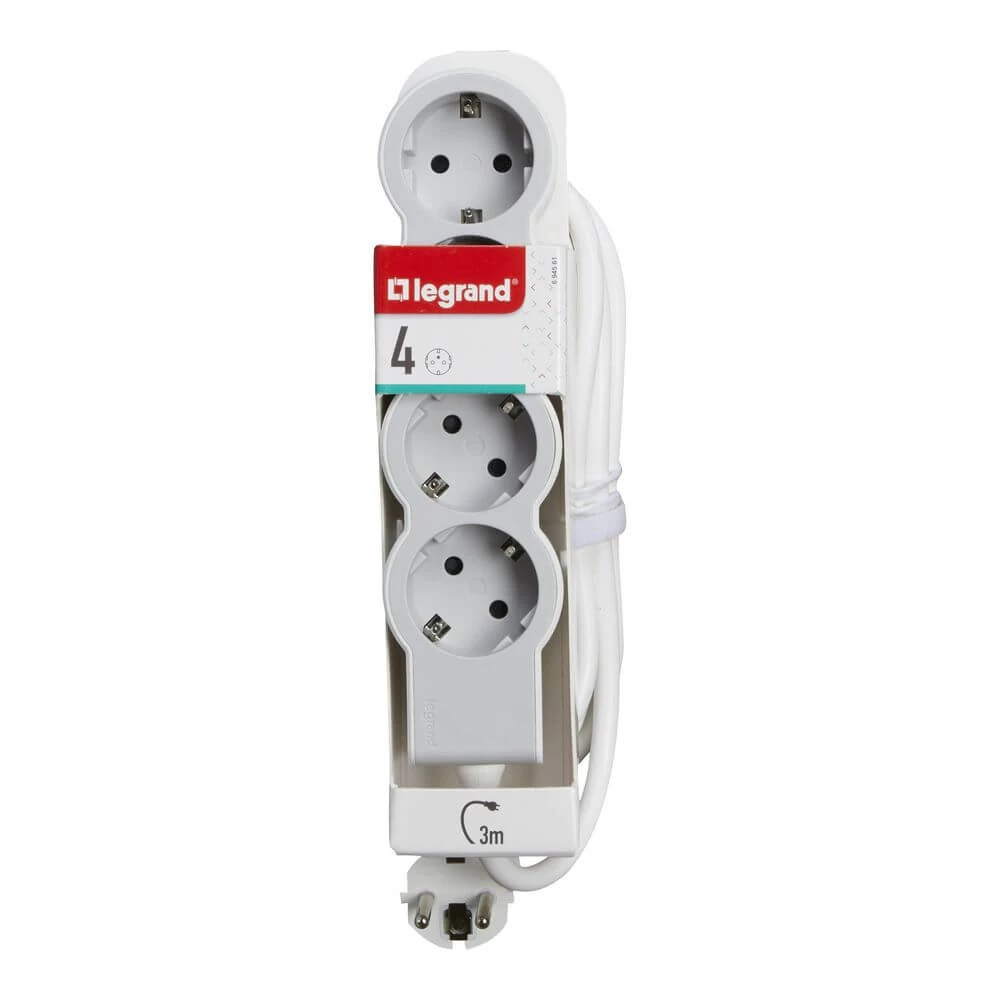 Legrand Flache Steckdosenleiste 4x Steckdose, 3 Meter Kabel Weiss-grau 694561