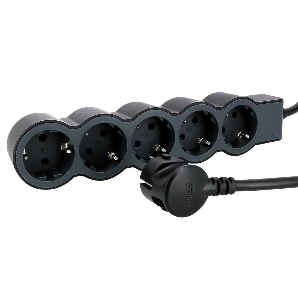 Legrand Flache Steckdosenleiste 5x Steckdose, 3 Meter Kabel Schwarz 694564