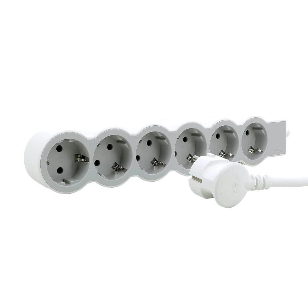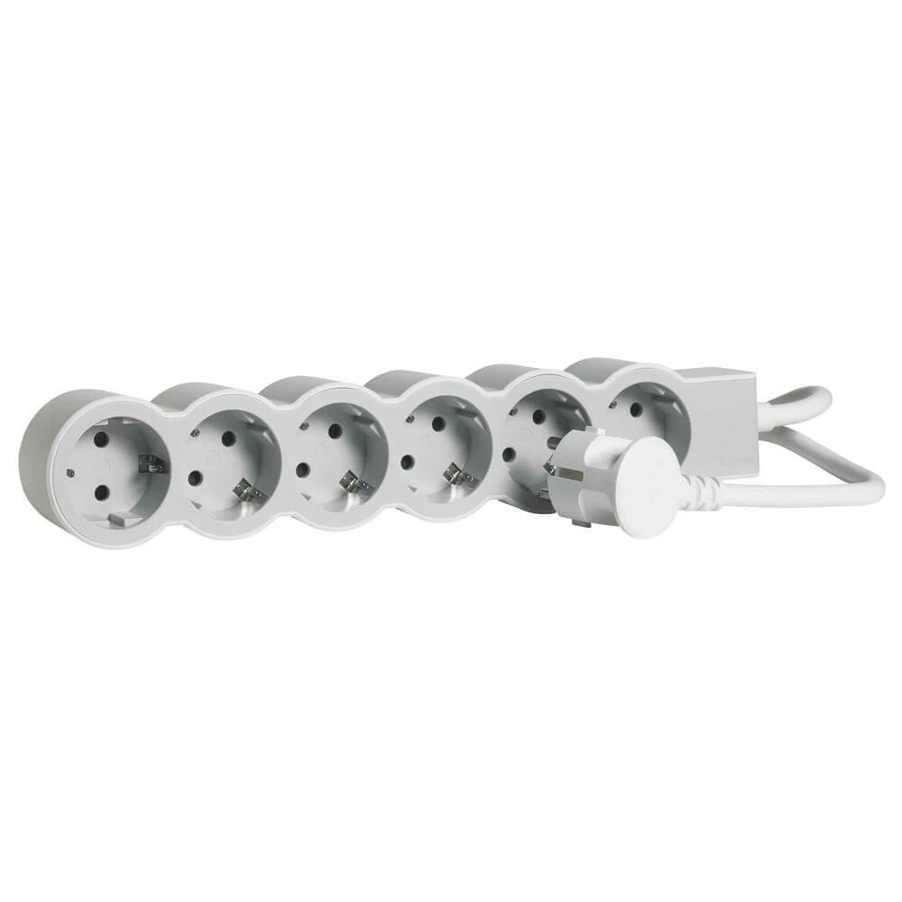 Legrand Flache Steckdosenleiste 6x Steckdose, 3 Meter Kabel Weiss-grau 694565