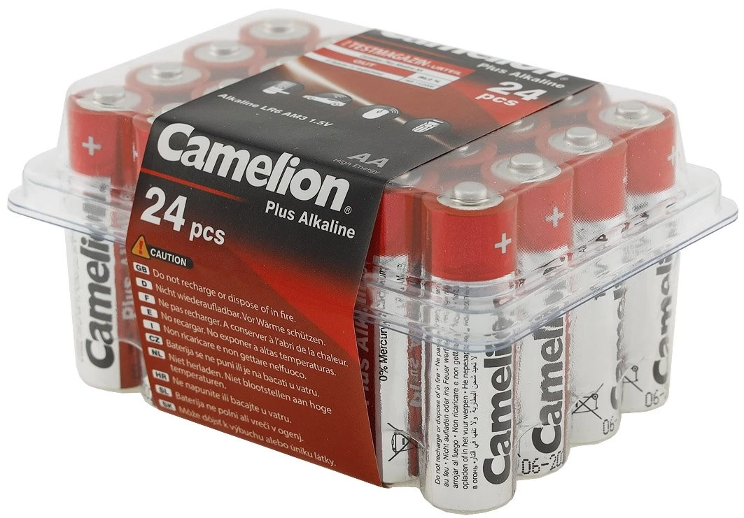 Der Vorteilspack in praktischer Haushalts-Kunststoffbox: 24x AlkalinePlus-Technologie von CAMELION mit Spitzenleistung, bei 0% Cadmium und Quecksilber obendrein umweltfreundlich.