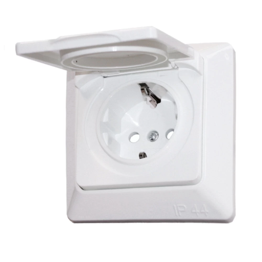 Wassergeschützte Steckdose Nortic IP44 von Pollmann mit Klappdeckel und Kindersicherung