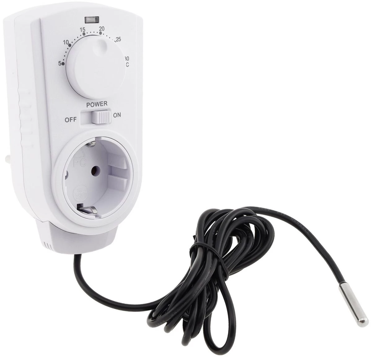 Dieser Zwischenstecker ermöglicht Ihnen das temperaturgesteuerte Schalten sowohl von Heiz- wie auch von Klimageräten. Sie stellen einfach die gewünschte Schalt-Temperatur von +5 bis +30°C ein, und bei Über- oder Unterschreiten dieses Sollwertes schaltet das Thermostat den angeschlossenen Verbraucher.